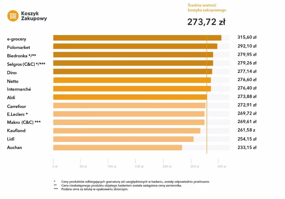 Autoři zprávy dále uvádějí, ve kterých obchodech došlo v průběhu roku k největšímu nárůstu. Patří mezi ně i Biedronka, kde byly ceny o 17,27 % vyšší než před rokem.