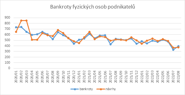 Graf: Bankroty fyzických osob podnikatelů 2020 – 2022